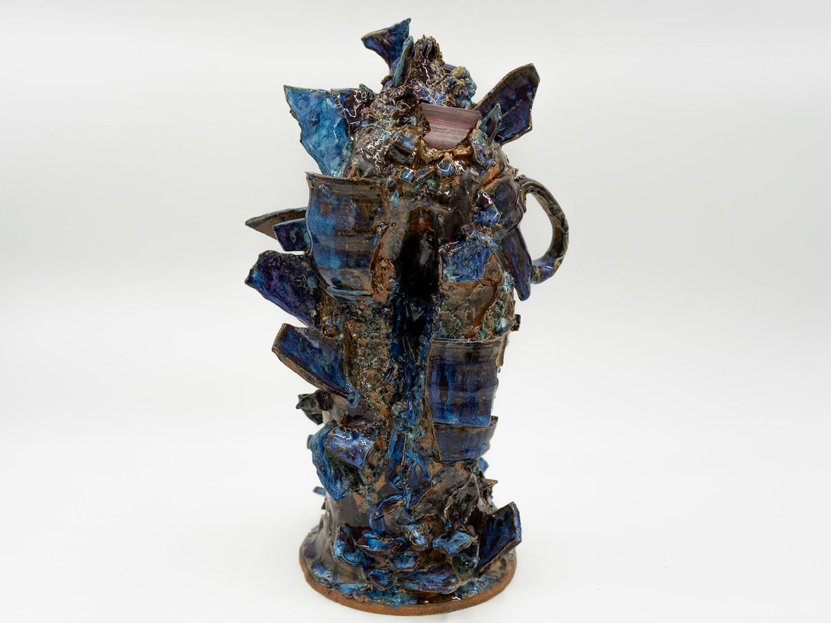 My work captures the metamorphosis of clay as it erodes, transforming porcelain to stoneware and creating riverbeds where clay becomes earth. Thousands of years of transformation have given ceramicists their materials, and I embrace and channel that change, and use it as inspiration for my forms. Using my knowledge of chemistry, I transform metals within my glazes and clays on a particle level, altering their essences to create worlds within pots and sculptures.